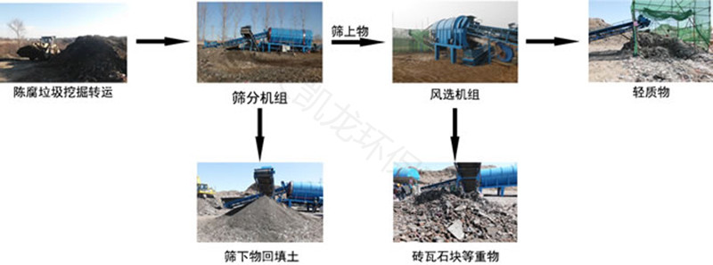 陳腐垃圾篩分設備的主要目的是通過分選,篩選和破碎實現垃圾中不同種類,不同尺寸和比重的成分的有效分離,從而達到高熱值部位的焚燒處理,包含有機物的生化處理,可回收的回收,不能再利用的回收處理。