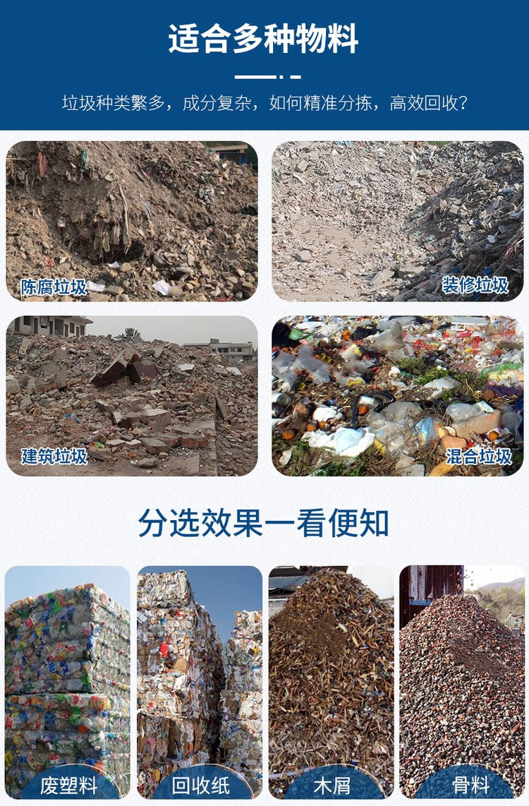 垃圾分揀設備出現之后,無論是生活垃圾、陳腐垃圾、建筑垃圾、還是裝修垃圾都有著良好的分類處理方法。循環分揀,垃圾再生回報社會,減少資源浪費,實現循環利用!